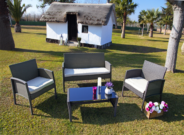 Conjunto de jardín de 4 plazas con mesita para el disfrute de un buen descanso.